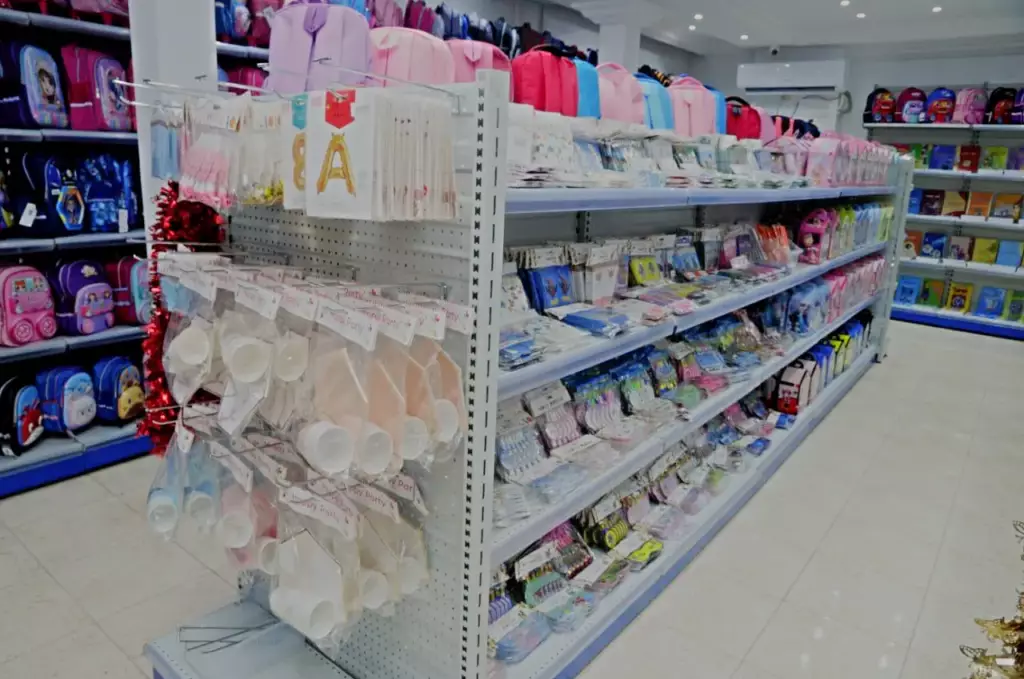 L’intervention réalisée a permis de mettre en place des rayonnages entièrement adaptés à la présentation de l’ensemble des produits de la librairie, incluant les livres, les fournitures scolaires, les sacs et les articles culturels.